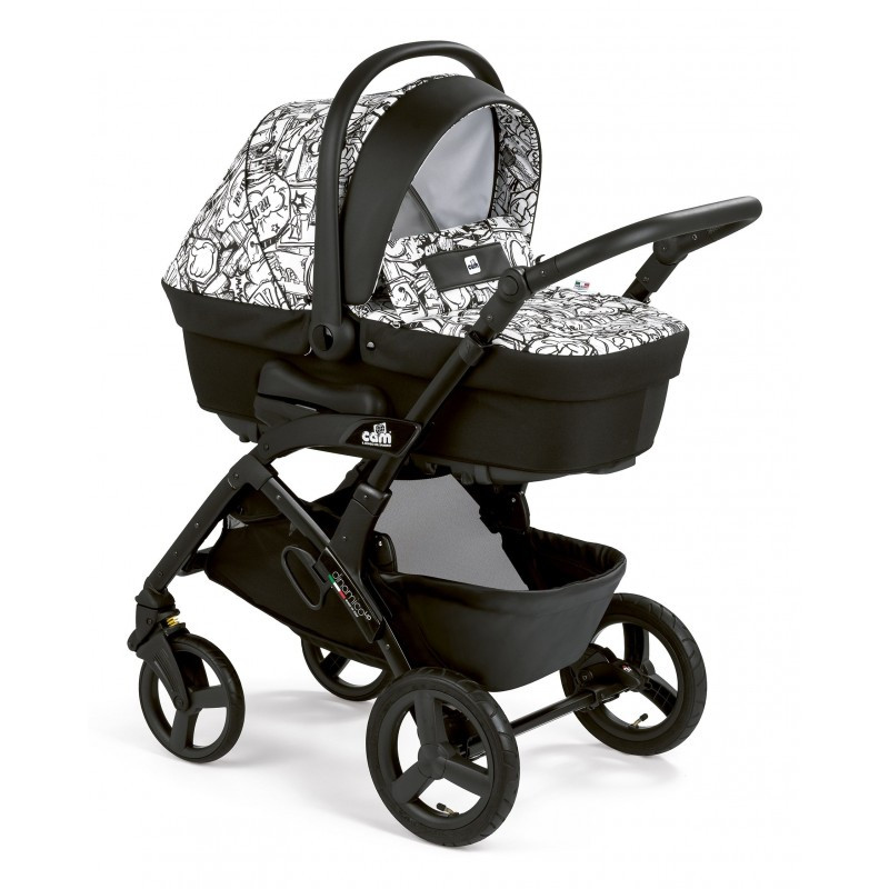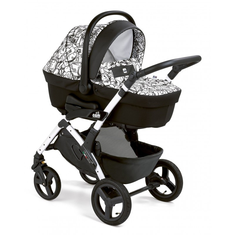 Коляска 3 в 1 CAM DINAMICO UP SMART, рама чорна, колір чорно-біле графіті (897T/V90/990/782K)