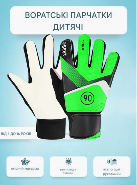 Воротарські дитячі рукавички TOTAL-90 BEST розмір №6 на 7-10 років салатові