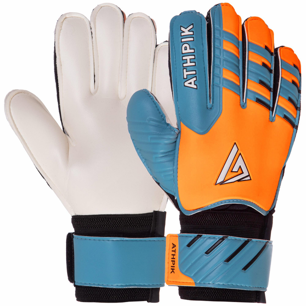 Рукавички воротарські із захисними вставками на пальці ATHPIK (PVC, р-р 8, Помаранчевий-синій) (FB-9277Помаранчевий-синій8)