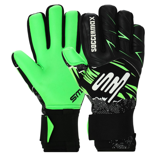 Рукавички воротарські професійні із захистом пальців SOCCERMAX розмір 9 чорний-зелений FB-8244