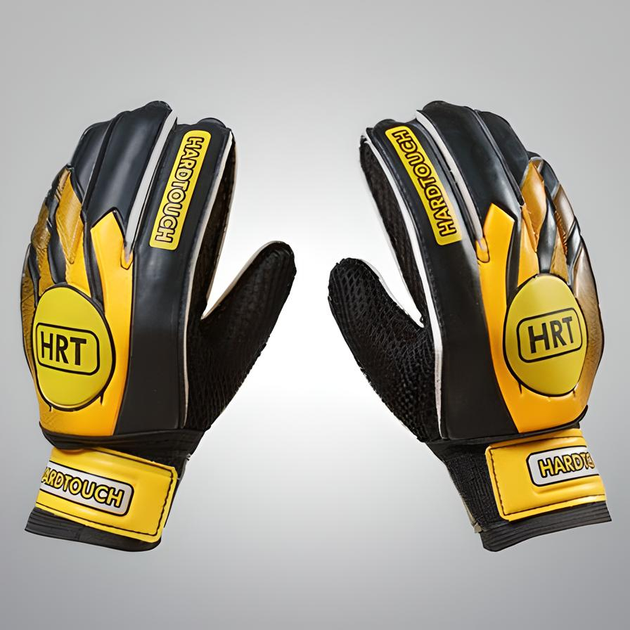 Воротарські футбольні рукавички з захисними втавками Latex Foam HRT Розмір 7 чорно-жовті GG-HRT