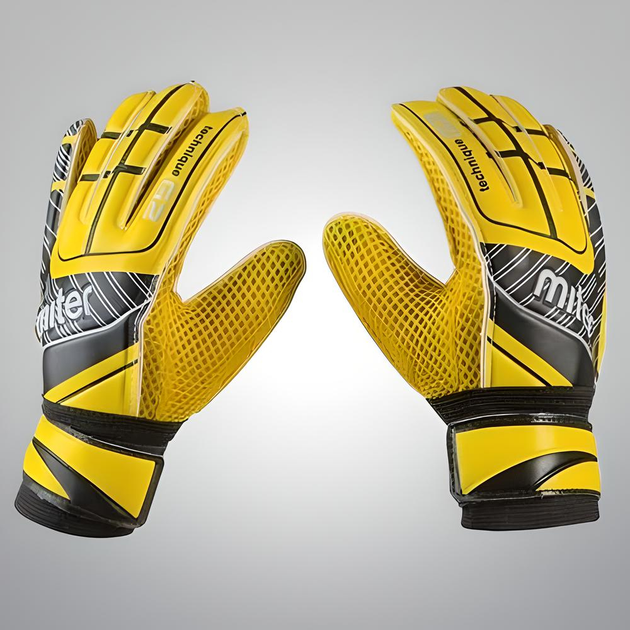 Воротарські футбольні рукавички із захистом пальців Latex Foam FC MITER жовті розмір 7 GGLG-MR