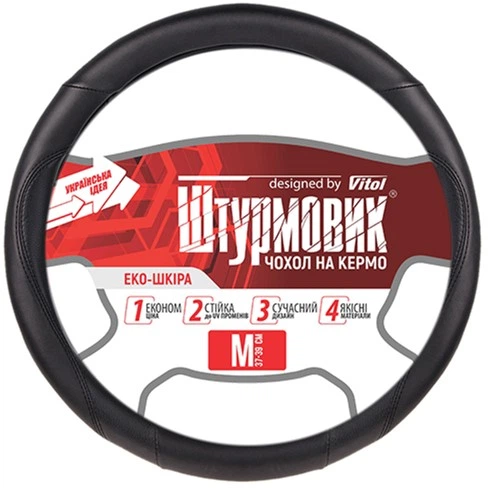 Чохол на кермо CarLife екошкіра M (37-39 см) Чорний (SW141M)