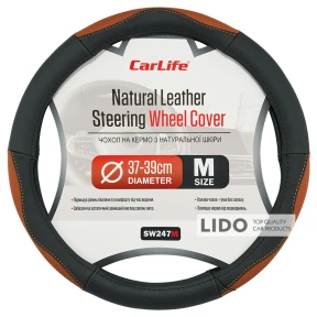 CARLIFE Чохол на кермо Carlife 37-39см, шкіра, чорний з коричневими вставками