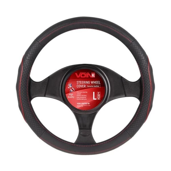 Чохол на кермо Voin S із перфорованої шкіри Чорний / Червоний (VLOD-L282BK/RDS) VLOD-L282BK/RDS