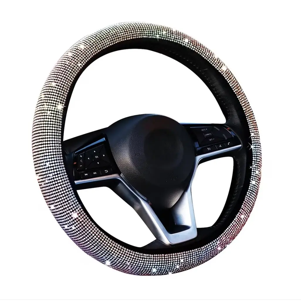 Блискучий чохол на кермо 38 см зі стразами для жінок, універсальний, протиковзкий, білий