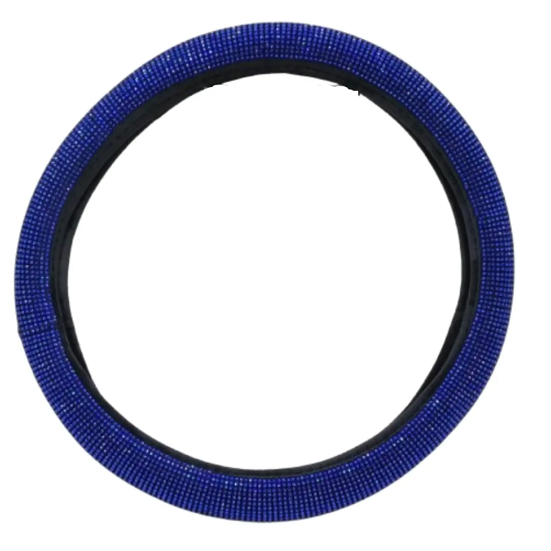Чохол на кермо зі стразами 38 см діаметр синій універсальний блискучий антислизький 1 шт