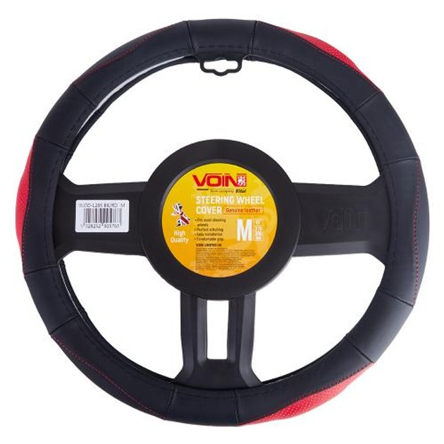 Чохол на кермо VLOD-L285 BK/RD M чорн-черв./БО/перф/шкіра