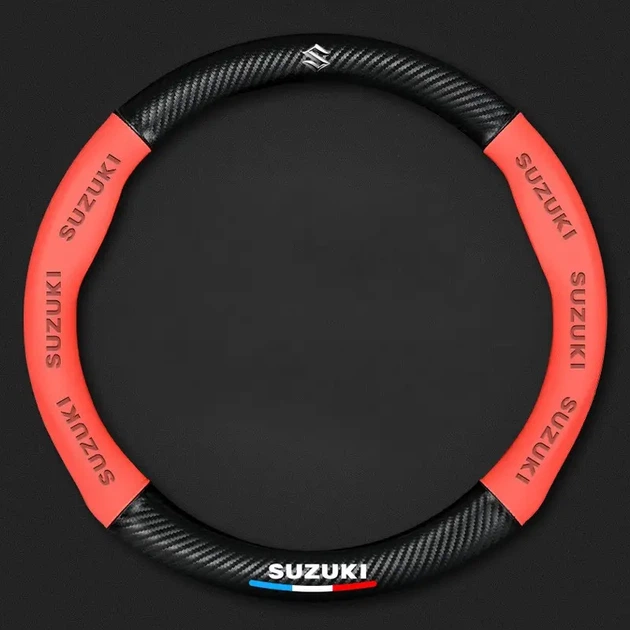 Шкіряний чохол на кермо Suzuki Sport Brend (37-39см),червоний зі вставкою з вуглеволокна