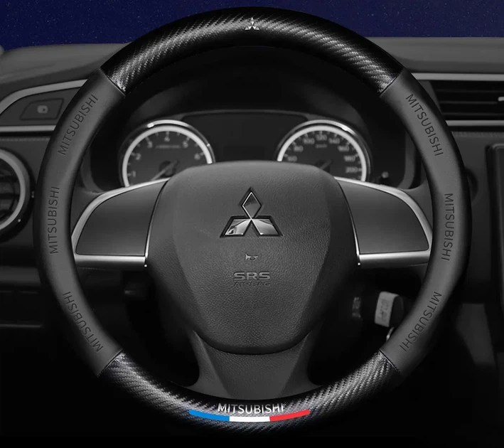 Шкіряний чохол на кермо Mitsubishi Sport Brend (37-39см),чорний зі вставкою з вуглеволокна
