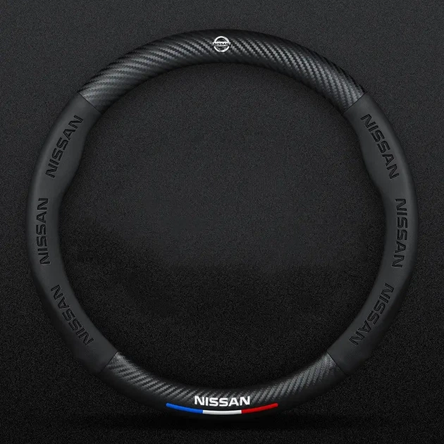 Шкіряний чохол на кермо Nissan Sport Brend (37-39см),чорний зі вставкою з вуглеволокна