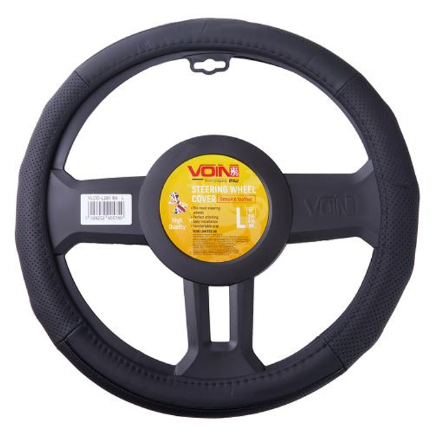 Чохол на кермо VLOD-L281 BK L чорний/БО/перф/шкіра