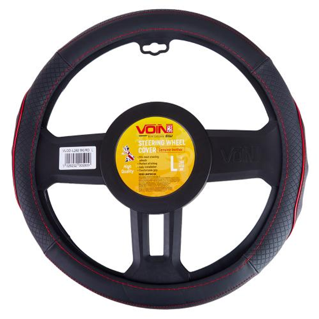 Чохол на кермо VLOD-L282 BK/RD L чорний червоний перфорована шкіра