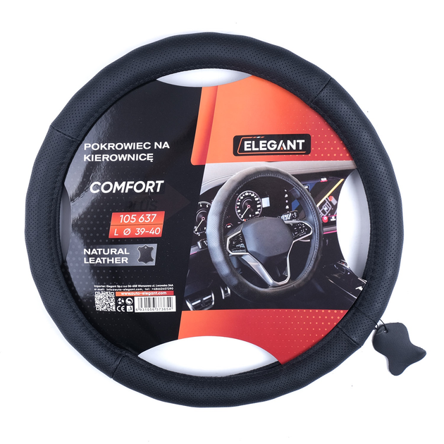 Чохол на кермо шкіра "L" (39-40см) чорний Elegant 105637 масаж, перф