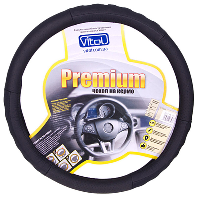 Чохол обплетення на кермо Vitol Premium 2040 розмір L чорний