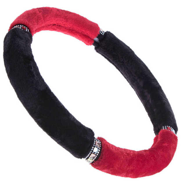 Чохол на кермо m (37-39 см) чорно-червоне хутро VITOL, VLOD-F93 BK/RD M