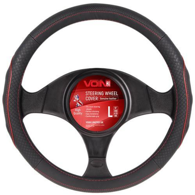 Чохол на кермо L 39-41 см шкіра VOIN VLOD-L282 BK/RD L