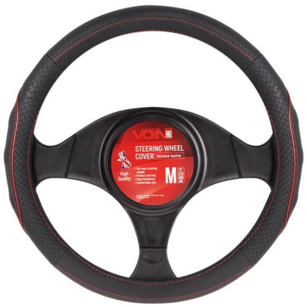 Чохол на кермо М 37-39 см шкіра VOIN VLOD-L282 BK/RD M