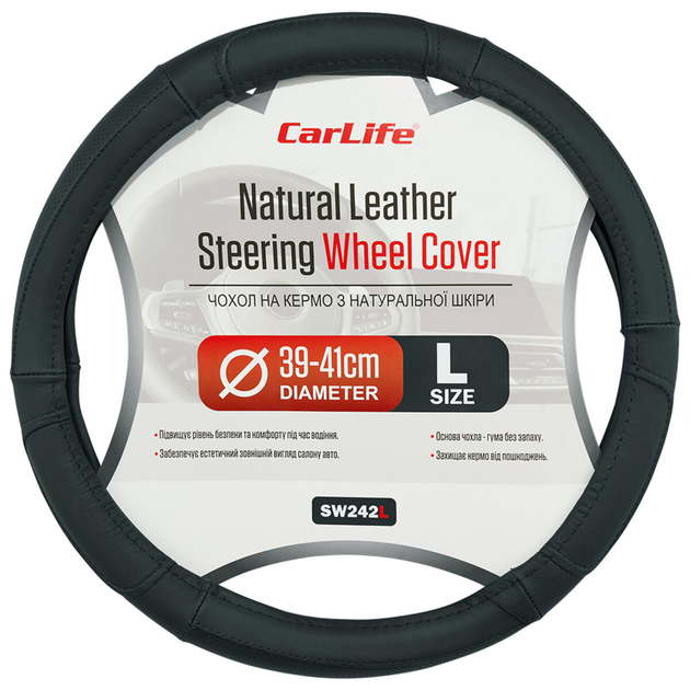 Чохол на кермо Carlife 39 - 41см, шкіра, чорний SW242L