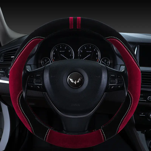 Каркасний чохол на кермо з алькантари (М)37-39 см, Червоний з чорним