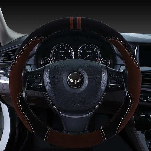 Каркасний чохол на кермо з алькантари (М)37-39 см, Коричневий з чорним