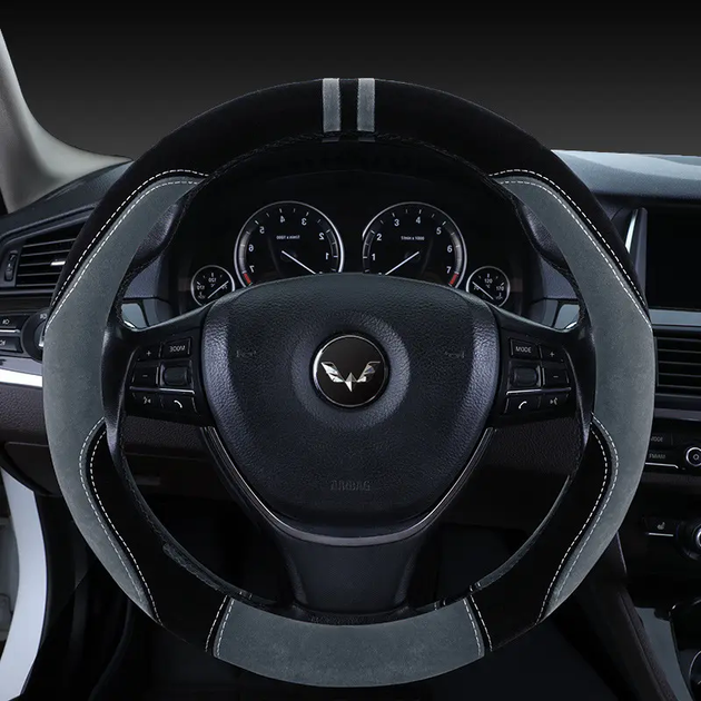 Каркасний чохол на кермо з алькантари (М)37-39 см, Сірий з чорним