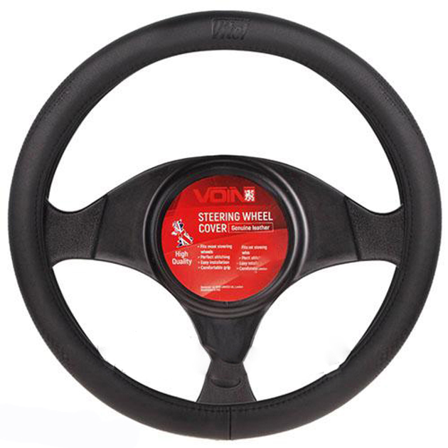 Шкіряна оплетка на кермо Voin 35-37 см Vlod-L06 BK S 1шов