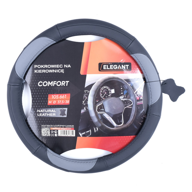 Чохол на кермо із сірими вставками "Elegant" із натуральної шкіри L (39-40 см) (32178)