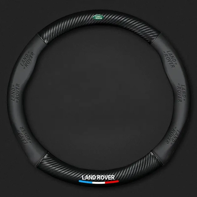 Шкіряний чохол на кермо Land Rover Sport Brend (37-39см),чорний зі вставкою з вуглеволокна