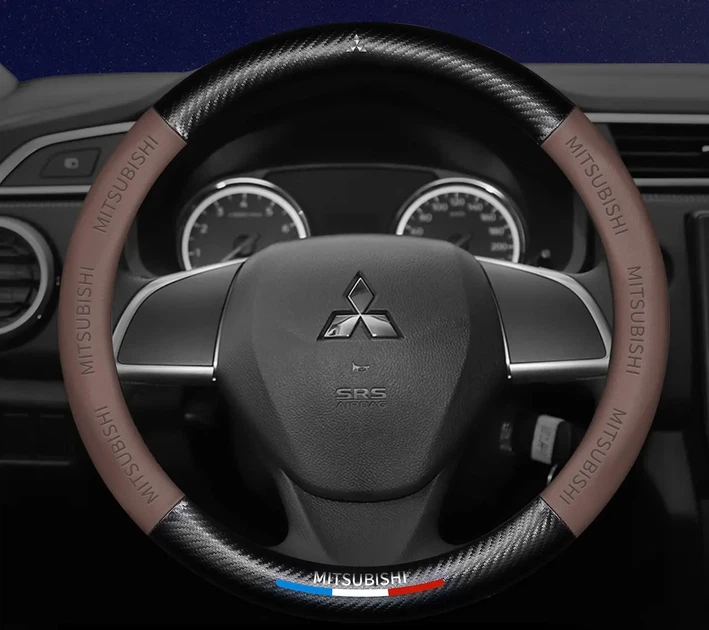 Шкіряний чохол на кермо Mitsubishi Sport Brend (37-39см),коричневий зі вставкою з вуглеволокна
