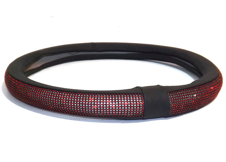 Чохол на кермо шкіра "M" (37-39см) чорний Стрази Червоні