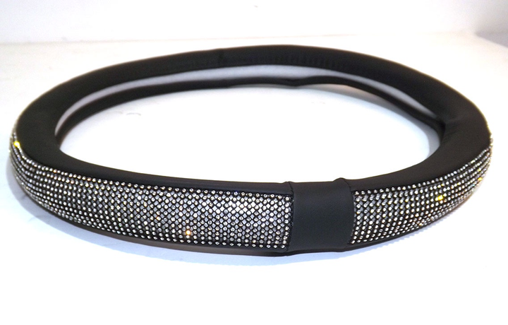 Чохол на кермо шкіра "M" (37-39см) чорний Стрази Чорні