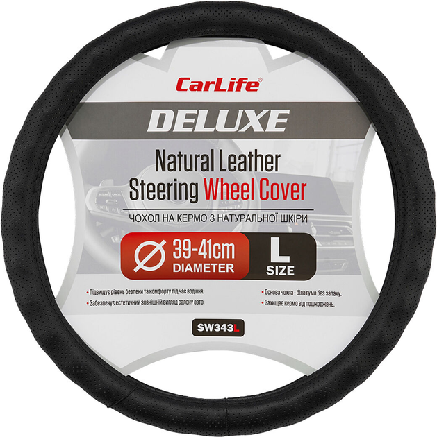 Чохол на кермо Carlife 39-41см чорний шкіряний для автомобіля захисний протиковзкий керма (DO-LI33S)