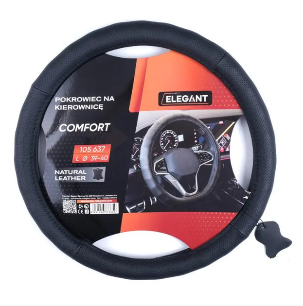 Чохол на кермо з перфорацією і масажною формою "Elegant" з натуральної шкіри L (39-40 см) (32169)