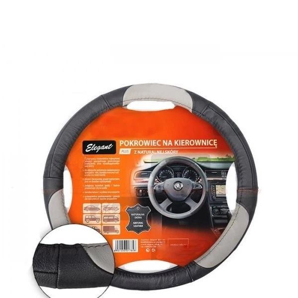 Чохол на кермо шкіра S 36см чорний/сіра Elegant 105660