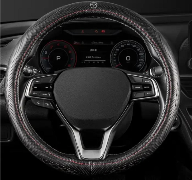 Чохол на кермо оплетка DLCar для автомобіля Mazda натуральна шкіра чорна