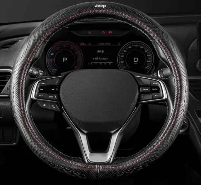 Чохол на руль DLCar для автомобіля Jeep із натуральної шкіри Чорний