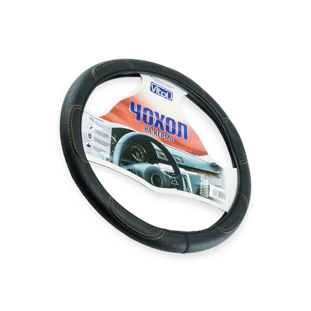 Чохол на кермо з еко-шкіри з оплеткою, 37-38 см, чорний