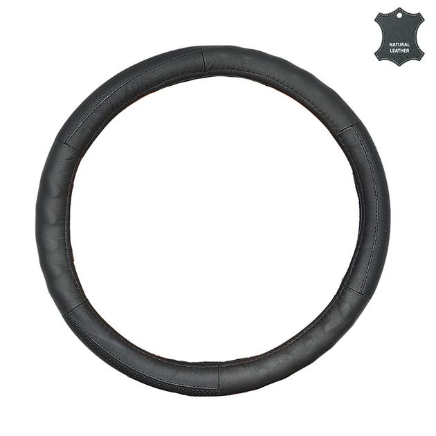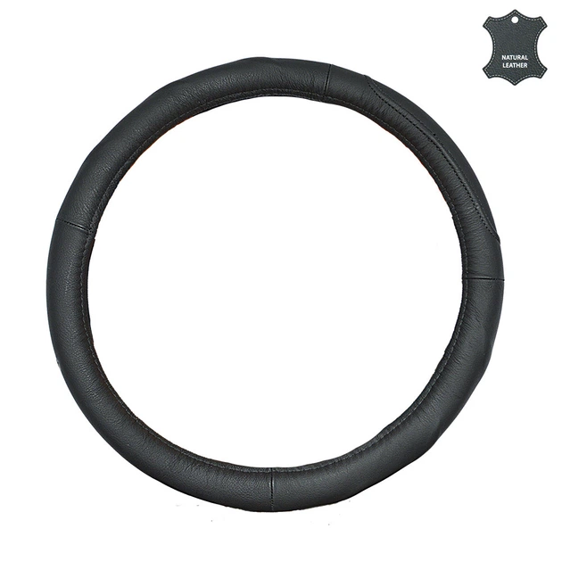 Чохол на кермо шкіряний затяжний під нитку чорний