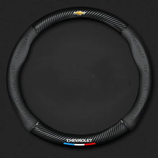 Шкіряний чохол на кермо Chevrolet Sport Brend (37-39см),чорний зі вставкою з вуглеволокна
