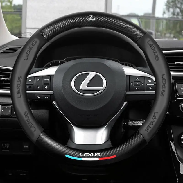 Шкіряний чохол на кермо Lexus Sport Brend (37-39см),чорний зі вставкою з вуглеволокна