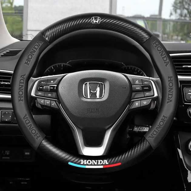 Шкіряний чохол на кермо Honda Sport Brend (37-39см),чорний зі вставкою з вуглеволокна