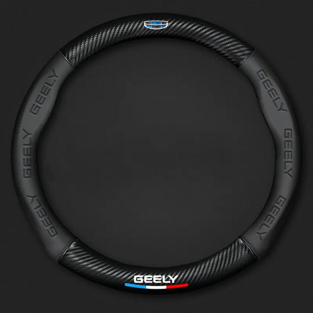 Шкіряний чохол на кермо Geely Sport Brend (37-39см),чорний зі вставкою з вуглеволокна