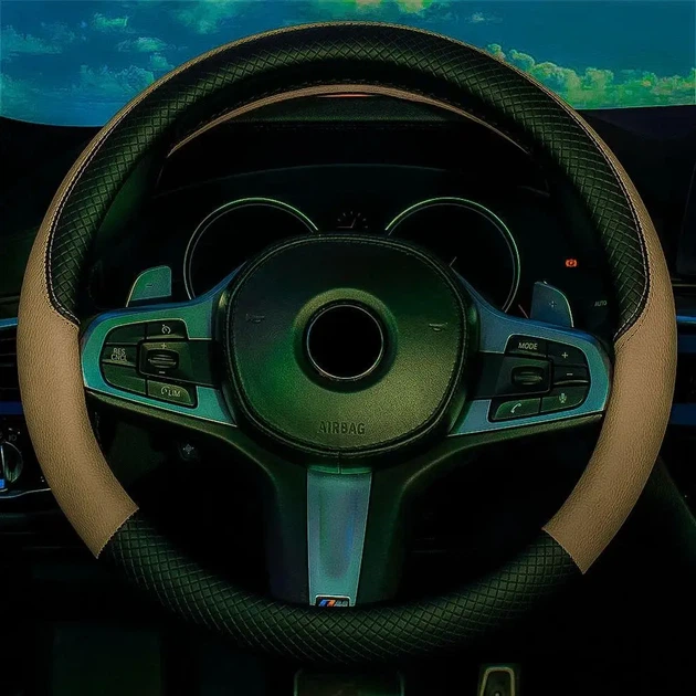 Чохол на кермо Elegant, розмір(М)37-39см Еко шкіра, темно бежевий колір