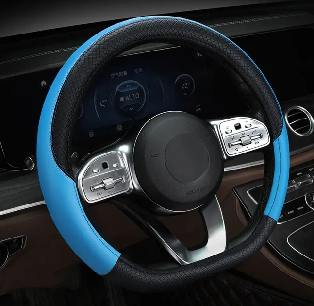Чохол на кермо Elegant D-подібний , розмір(М)37-39см Еко шкіра, синій колір