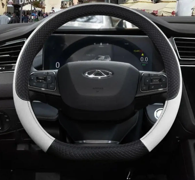 Чохол на кермо Elegant D-подібний , розмір(М)37-39см Еко шкіра, білий колір