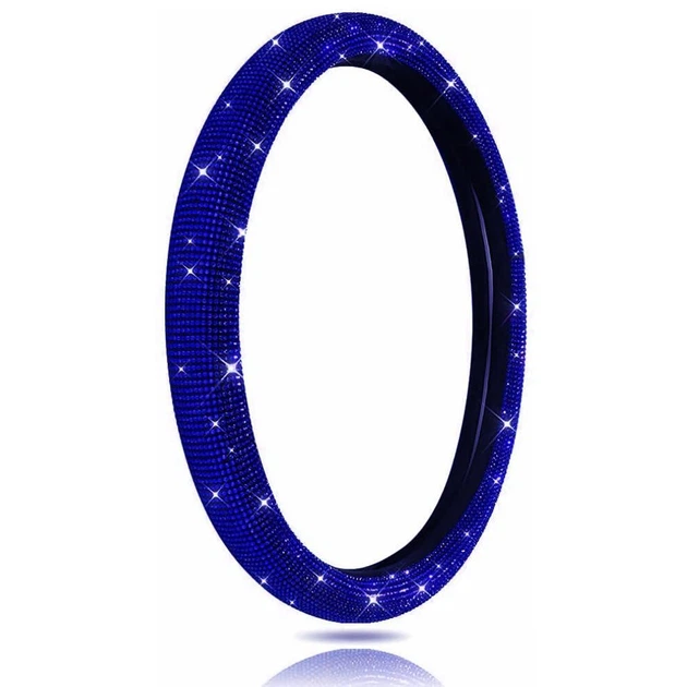 Чохол на кермо зі стразами 38 см діаметр синій універсальний блискучий антислизький 1 шт