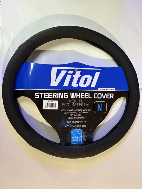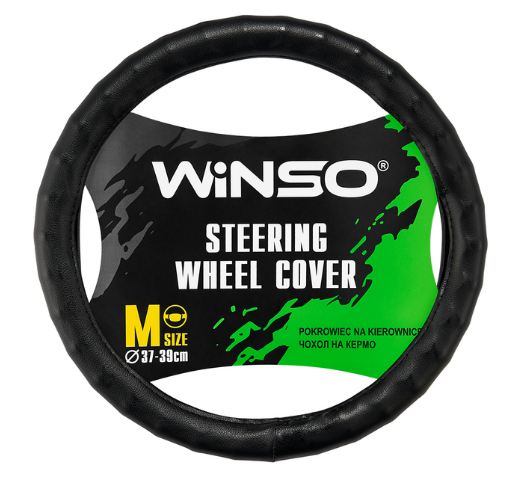 Чохол на кермо "M" (37-39см) чорний Екошкіра один шов масаж "Winso "142620