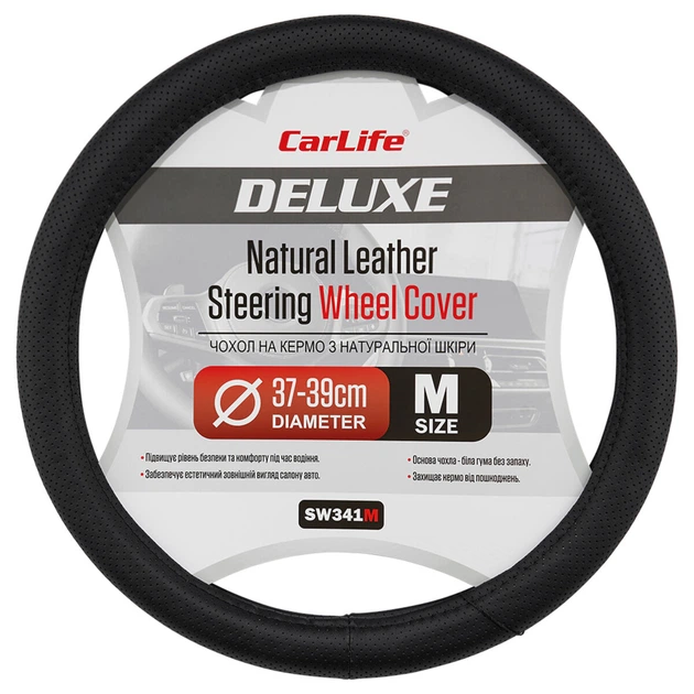 Чохол на кермо Carlife 39-41см чорний шкіряний для автомобіля захист від зносу та прослизання (1LO-TH11C)
