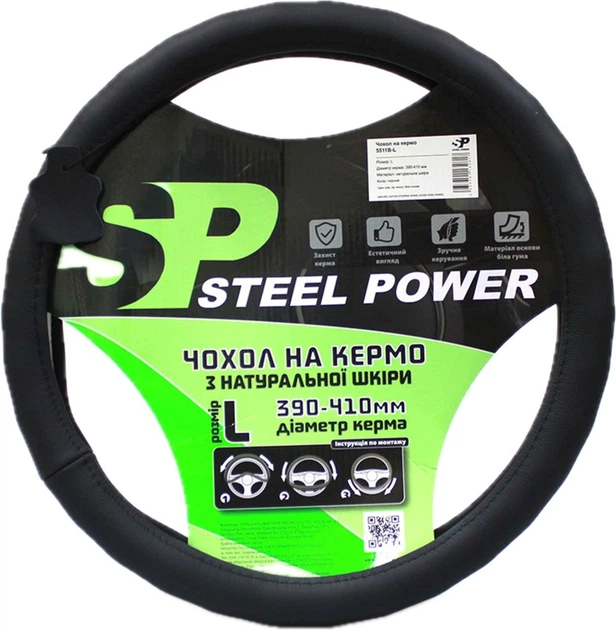 Чохол на кермо CarLife шкіряний L (39-41 см) Чорний (SW340L)